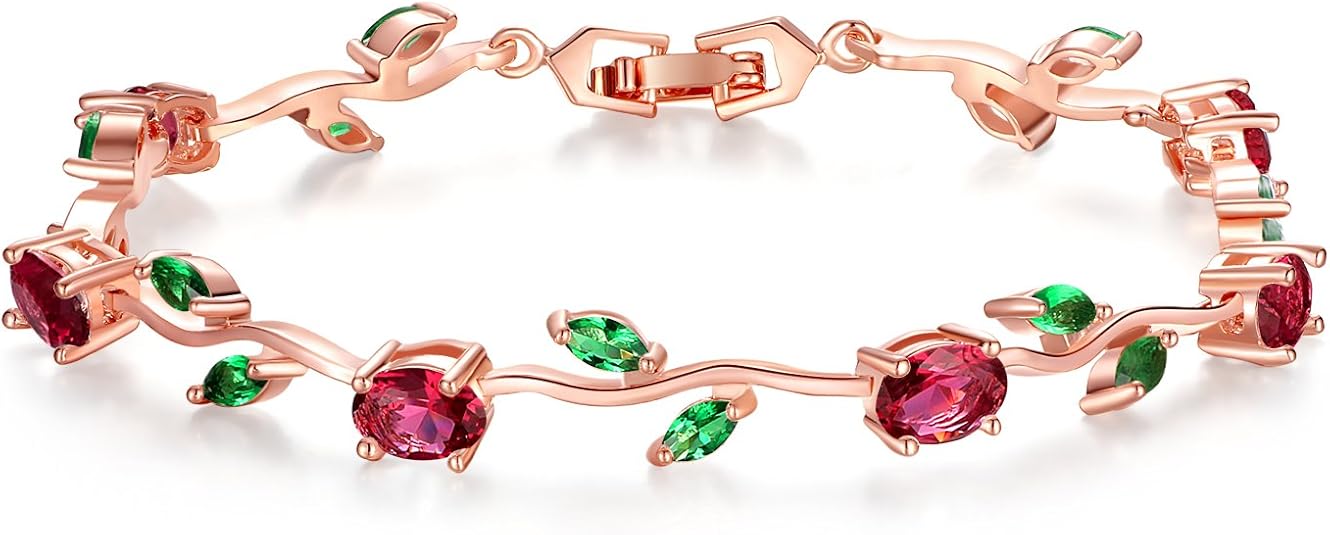 BISAER Lovely White Gold Plated AAA Cubic Zirconia Gemstone Flower Vine 7 Inches Bracelet for Mother