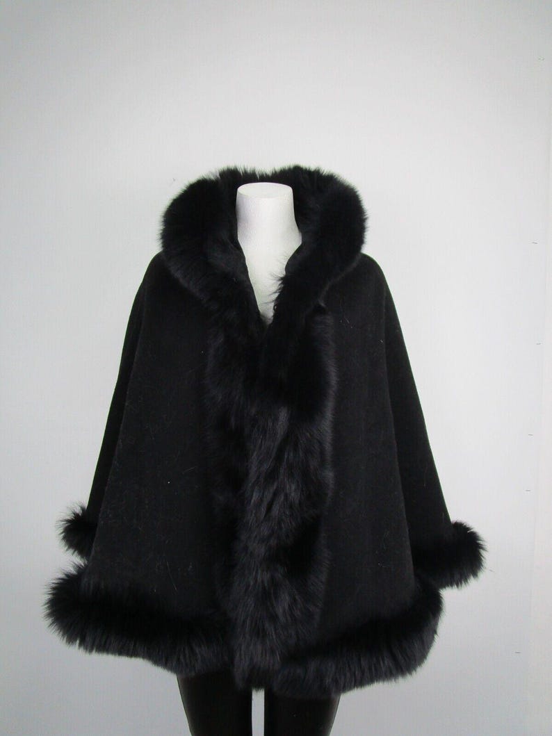 Women's New Black Cashmere Wool Wrap Cape With Fox Fur Hood BLACK FRIDAY SALE - Etsy