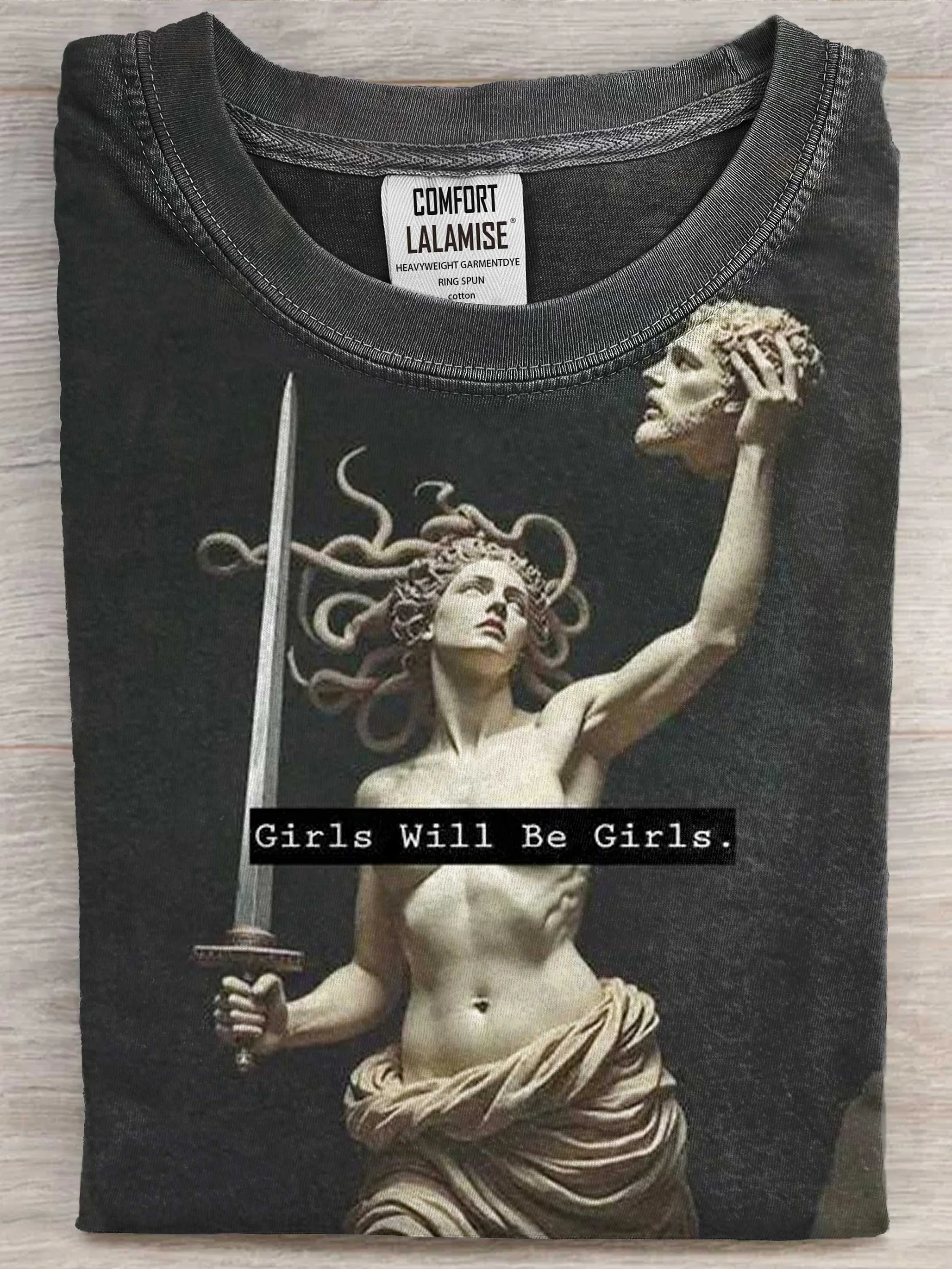 Girl Will Be Girls Shirts Medusa Feminist Women Art Print casual Short Sleeve T-shirt