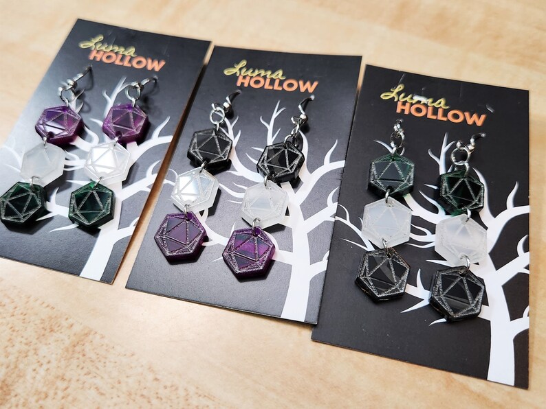 Gay Pride Flag Rainbow LGBTQ Dice Dnd D20 RPG Gamer Lightweight Laser Cut Acrylic Dangle Earrings -