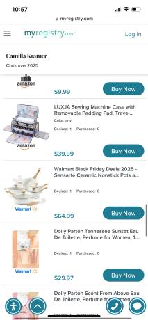If you buy any of these items, please come back to this list and click the "Reserve" link to mark which item(s) you purchased. This will help ensure that Camilla Kramer does not get duplicate gifts.