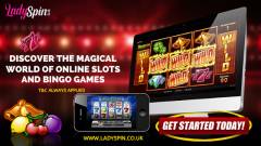 Don't Miss the Chance to Try your luck with this new Online Slots UK offer from Ladyspin. These Bingo and Slots UK and Live Bingo rooms available here help you to get more exciting options to play and win the Online Slots and Bingo jackpot games.