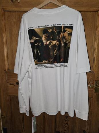 Black or White tees preferred. Oversized XL or regular XXL. Tees with a strong back graphic featuring Baroque art (e.g. Caravaggio) and clean text/visuals. The one pictured is my favourite but I've got plenty of these! Just use for inspiration