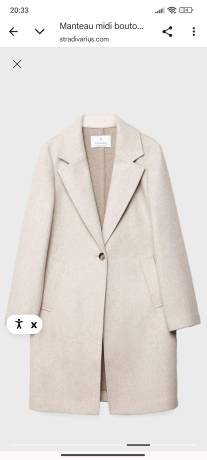 Manteau midi bouton toucher doux. Ecru. Taille L. Stradivarius. 35€99