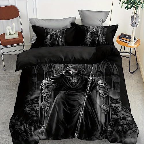 Tête De Mort 3D Housse De Couette King Size Imprimé Floral Parure De Lit en Microfibre Parure De Lit