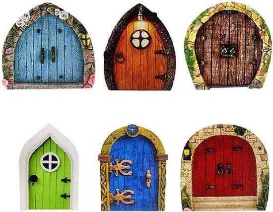 Houten Fairy Deur Mini Deur Vorm - 6 Stuks - Voor Tuin en Bomen