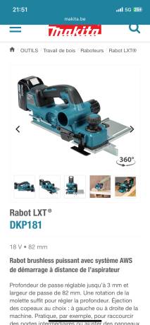 Rabot Makita sur batterie