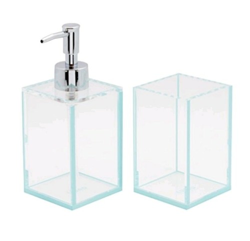 Lund London Transparent Acrylic Bathroom set Soap Dispenser & Storage Pot Blue | eBay