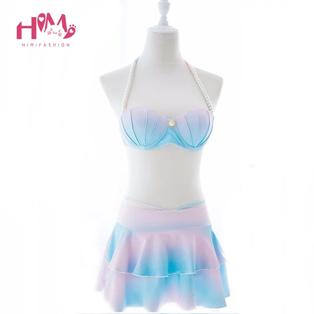SUKUMIZU Kawaii Pink Sexy Women's Slim Fit Japanese Falbala Chiffon Trim Swimwear Swimsuit Cosplay