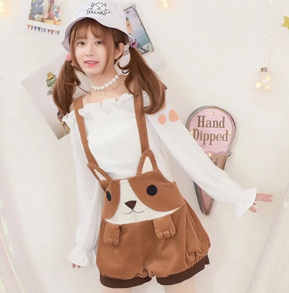 Cute brown bear bloomer dungaree shorts