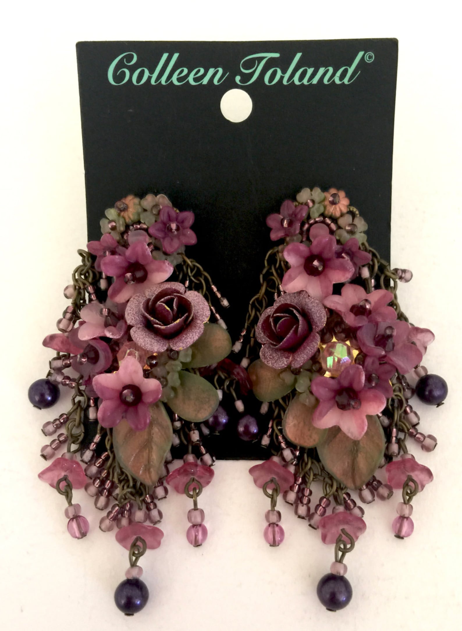 ROMANTIC CHANDELIER EARRINGS in Purple Plum Handbeaded by Colleen Toland Dangle Drop Beaded Designer