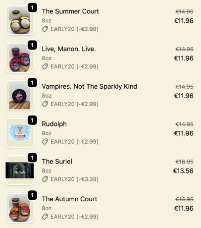 I really want the "Autumn Court" candle. Coupon: EARLY20