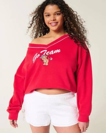 Oversized Go Team Graphic V-Neck Sweatshirt
