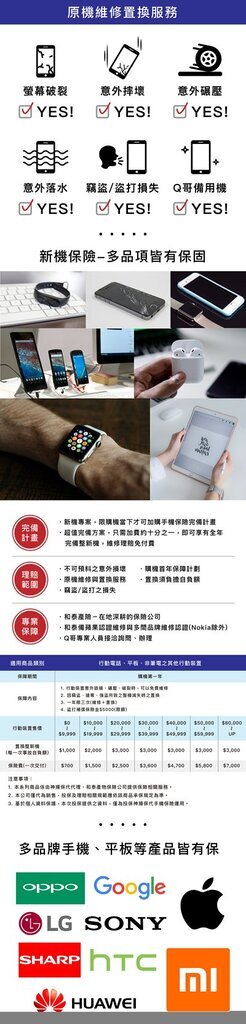 手機 / 平板新機保險 新機保障計劃 有新機摔壞回原廠修,被報價嚇死的經驗嗎? iPhone XS 螢幕碎裂原廠維修動輒上萬,新買的愛機就怕預料不到的事發生,Q哥新機保障方案讓您多一份對愛機的保障
