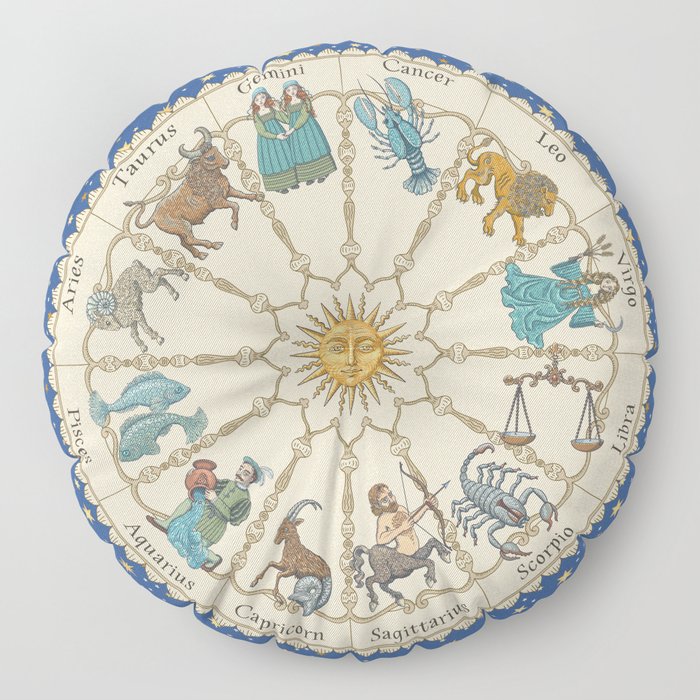 Vintage Astrology Zodiac Wheel Floor Pillow by undaunted_design