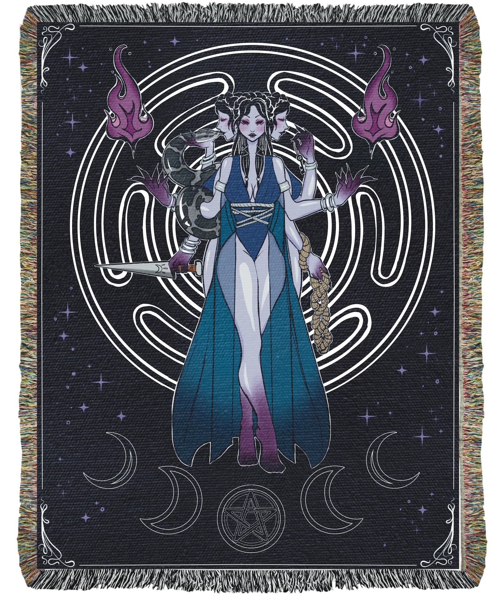 Crossroads Goddess Woven Tapestry Blanket | Hecate Moon | Occult Altar Decoration | Gothic Wall Art