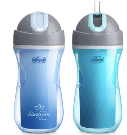 The double-wall design of this Chicco straw cup helps keep drinks cool longer