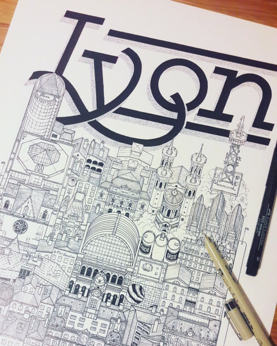 Illustration Lyon - Série *Travel With Me * | Noir et Blanc | 32x45 cm