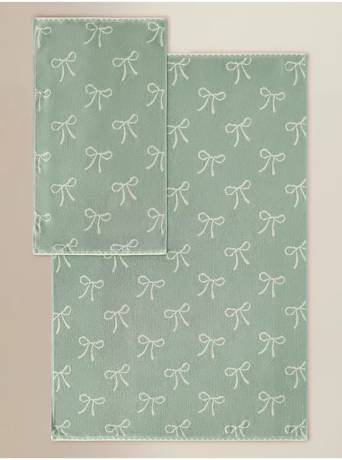 Green and Cream Bow Bath Mat