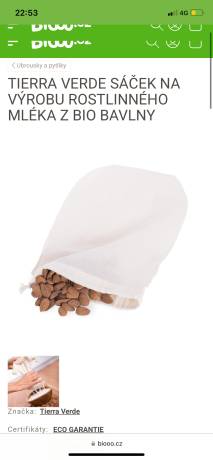 TIERRA VERDE SÁČEK NA VÝROBU ROSTLINNÉHO MLÉKA Z BIO BAVLNY (75,-)