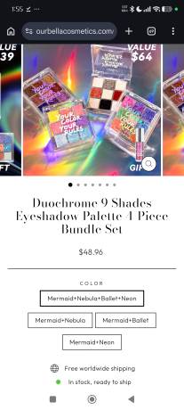 Duochrome 9 Shades Eyeshadow Palette 4-Piece Bundle Set Mermaid+Nebula+Ballet+Neon
