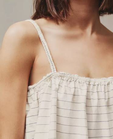 Popeline top met een gestreept motief en smalle bandjes.