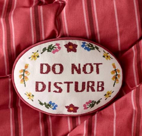 Do Not Disturb Cross Stitch Throw Pillow $34