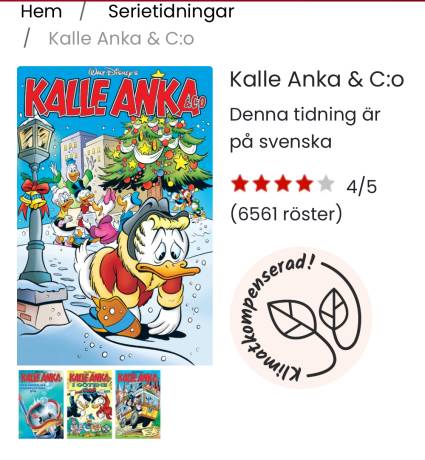 Kalla Anka-prenumeration. Gärna med premie/gåva dock ej ryggsäck