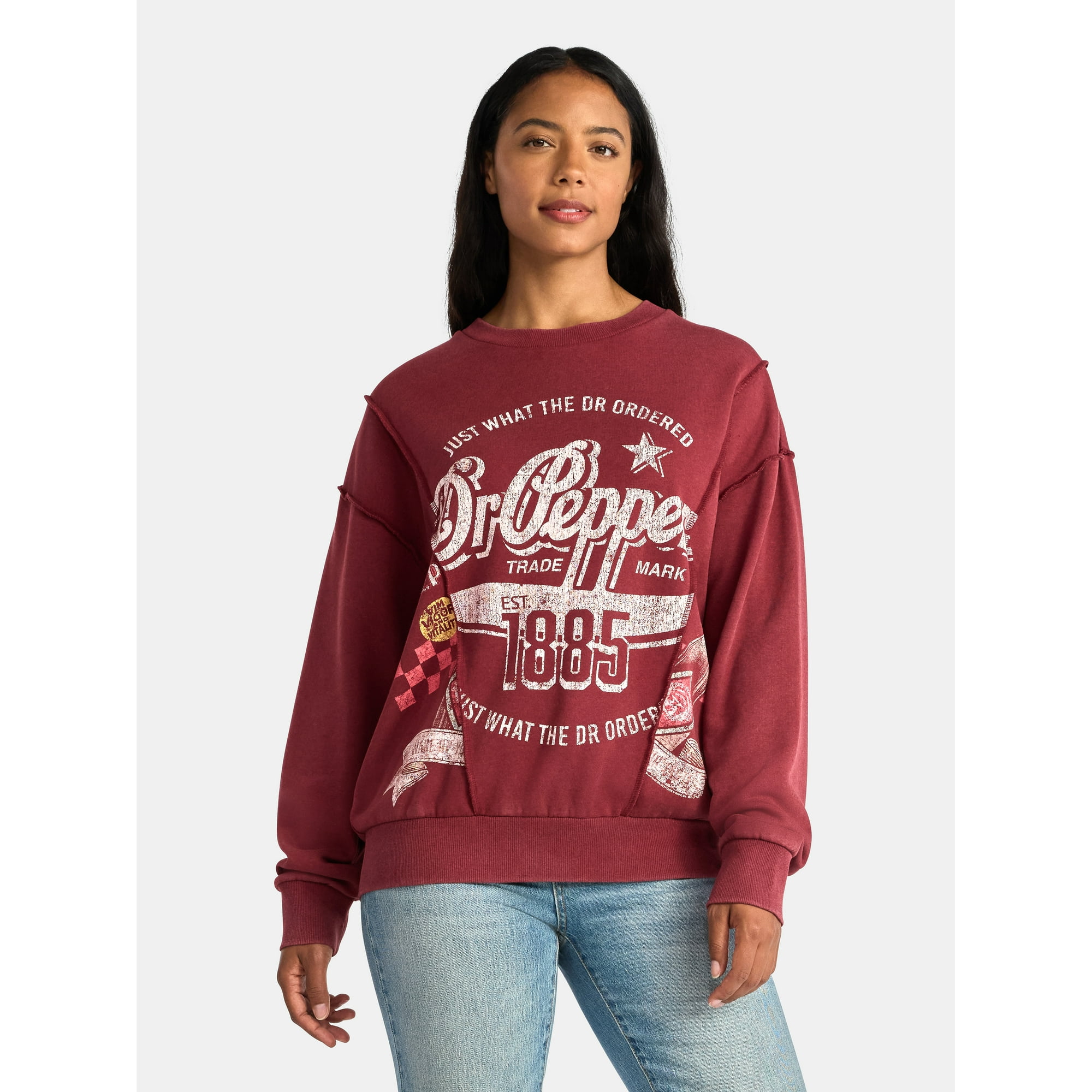 Dr. Pepper Women's Seamed Graphic Sweatshirt with Long Sleeves, Sizes XXS-XXL - Walmart.com