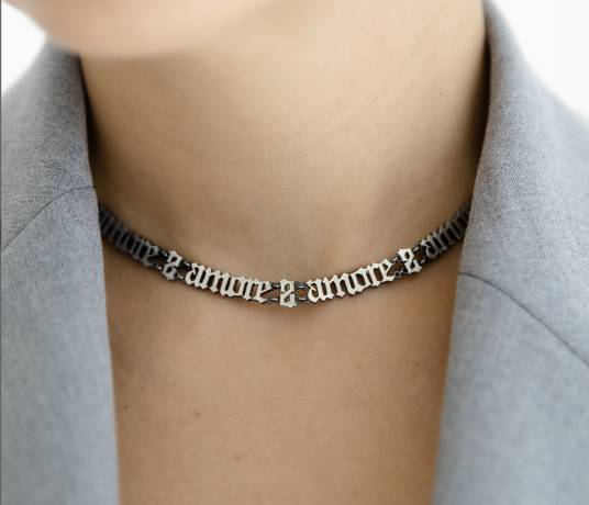Серебряное колье со словами Amore, от Zazki. Активная ссылка на него ниже. Также можно купить непосредственно в магазине "Цацки" на Викулова 61/4