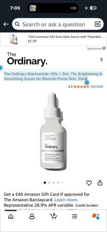 The Ordinary The Ordinary Niacinamide 10% + Zinc 1%, Brightening & Smoothing Serum for Blemish-Prone