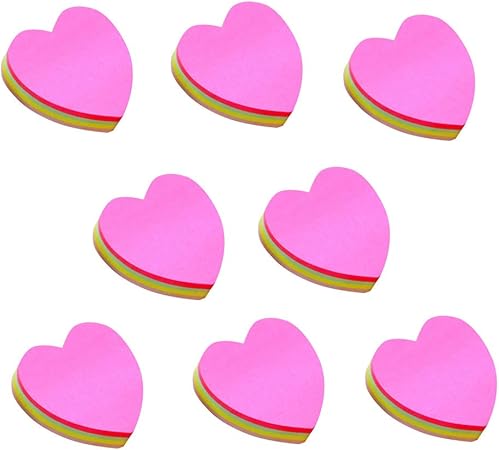 LGEGE 8 Pads Heart Shaped Note Pad Self-Sticky Note Memo Pad Adhesive Paper Post Notes